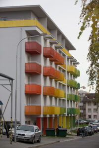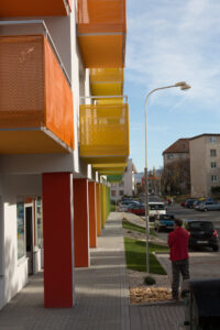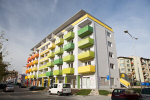 Galéria ColorHouse I Color House I polyfunkčný bytový dom v Topoľčanoch 6 nadzemných podlaží, 45 bytových jednotiek (1 až 4 izbové byty), 7 obchodných priestorov